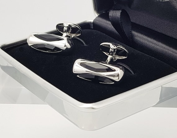 Handmade Austrian Onyx Black Crystal Cufflinks: Formal Wear